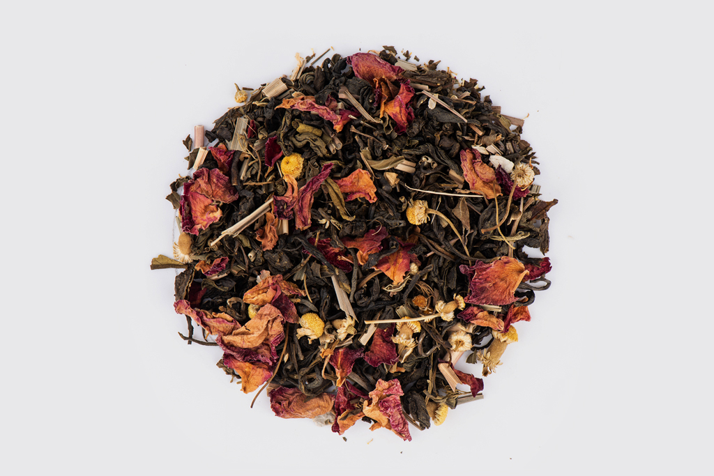 the best combination of Chamomile along with rose petals and green tea to have both a